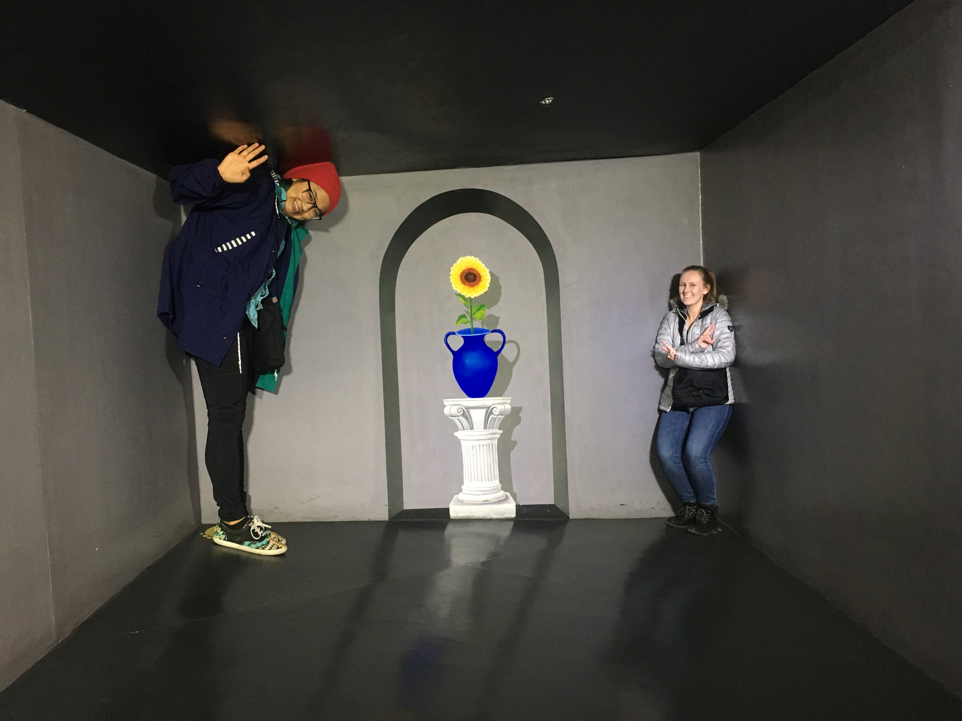 It had your typical “oh my gosh, me the midget is miraculously taller than my giant friend” warped perception room, and the classic “look, I’m planking in mid-air, cause kids still do that these days, right?” exhibit, among others. Heck, it even had an ice museum.