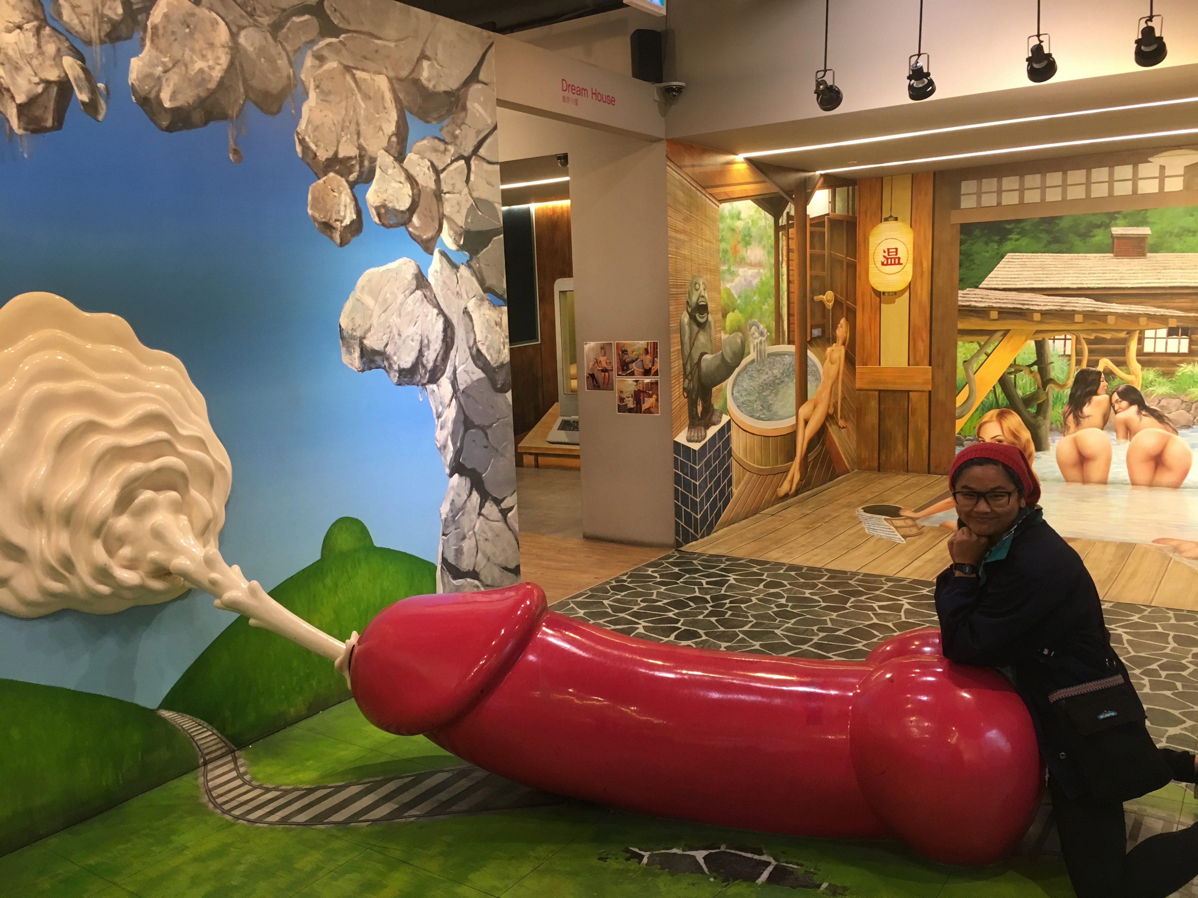 Did I mention the museum also offered its guests special glasses to take photos in? You know, just incase you were too shy to show your face next to a giant pink penis jizz-blasting a stone wall.